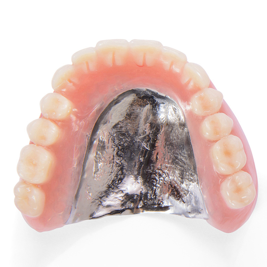 金属床義歯は、入れ歯の土台となる床(しょう:歯茎に接する部分)が金属でできている入れ歯です。薄いため装着時の違和感が少なく、食べ物の温度を感じやすい特徴があります。